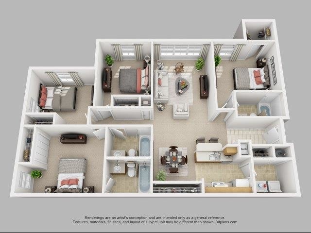 Apartment Model: Four Bedroom4 Bedroom, 3 Bath, 1479 sq ftUnavailable![]()