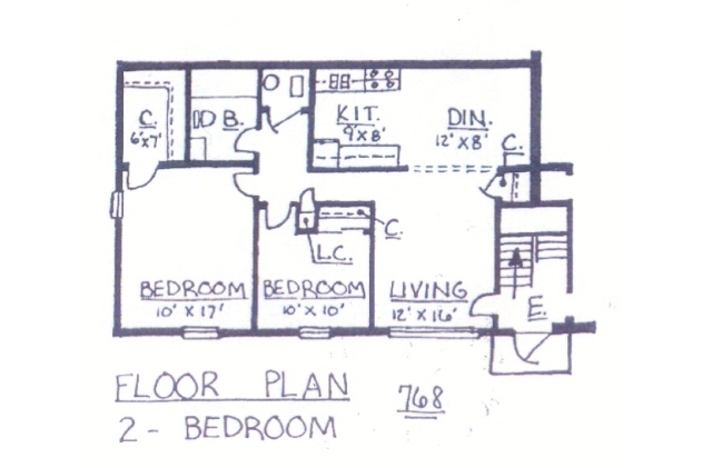 2 Beds, 1 bath - Floorplan 1