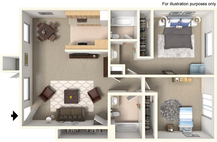 2 Beds, 2 Baths, 904 sq ftAvailable NowModel Gallery