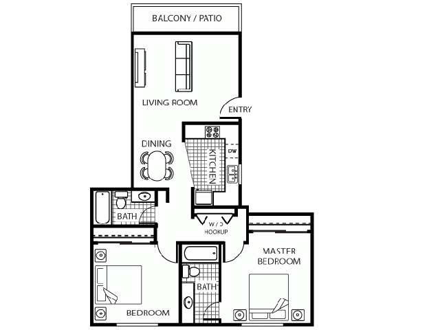 Apartment Model: 2 Bedroom 2 Bath C2 Bedroom, 2 Bath, 940 sq ftUnavailable![]()