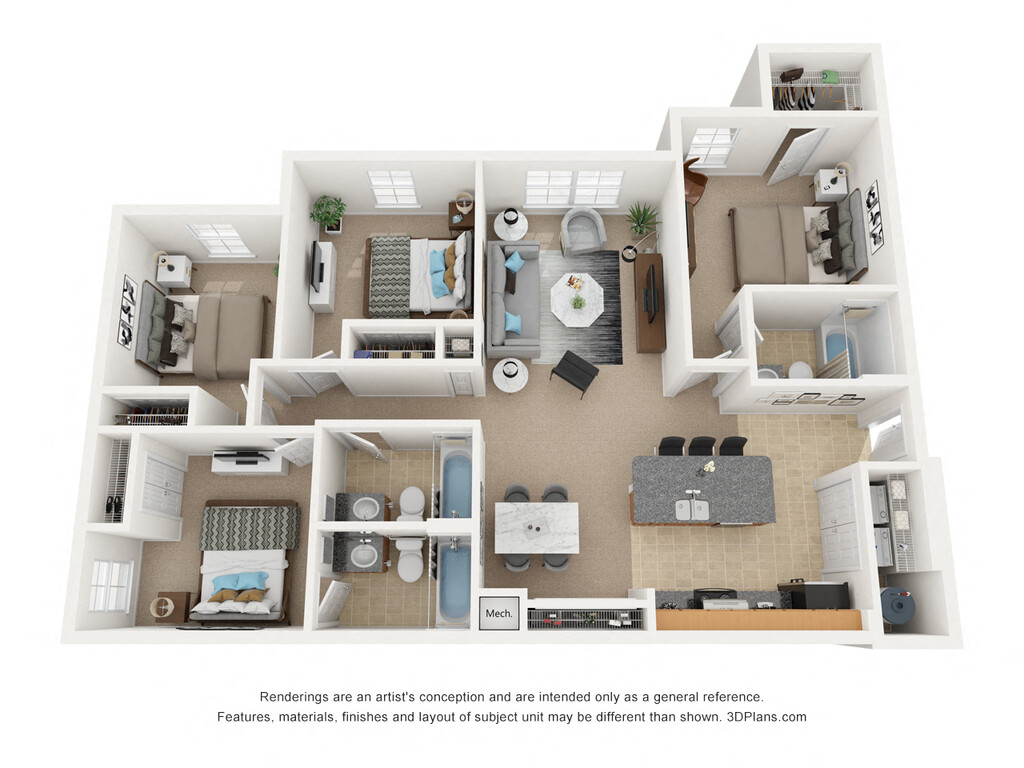 4 Beds, 3 Baths, 1197 sq ftAvailable NowModel Gallery