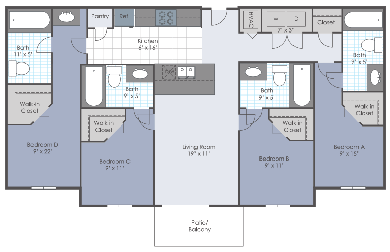 Apartment Model: 4 Bedroom, 4 Bathroom Full Apartment$9994 Bedroom, 4 Bath, 1200 sq ftUnavailable![]()
