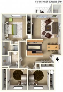 Apartment Model: 2x1$1,4152 Bedroom, 1 Bath, 882 sq ftAvailable NowFloorplansPhotos![]()