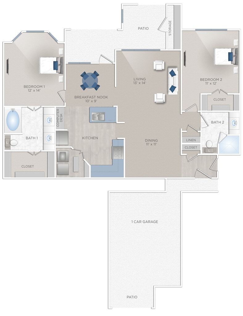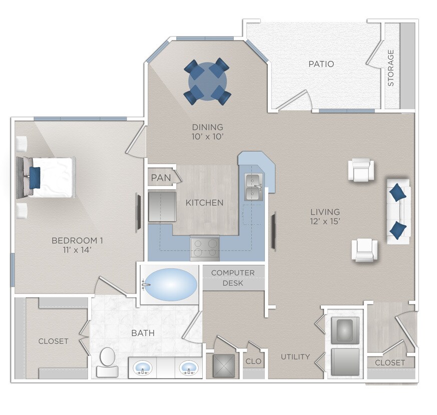 1 Bed, 1 Bath, 893 sq ftAvailable Nov 2Largest 1 BedroomThis is the largest 1 Bedroom at this PropertyModel Gallery