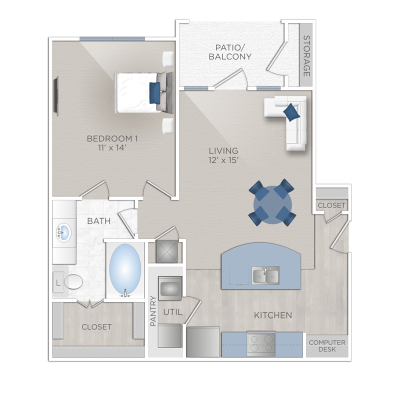 1 Bed, 1 Bath, 705 sq ftAvailable Dec 6Model Gallery