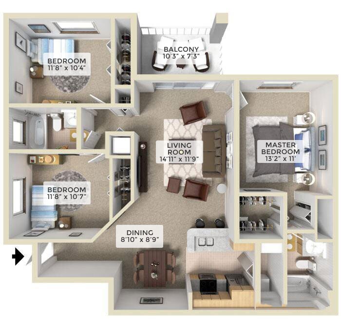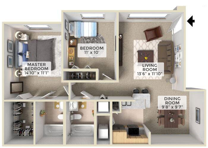 1 Bed, 1 Bath, 698 sq ftAvailable NowLargest 1 BedroomThis is the largest 1 Bedroom at this PropertyModel Gallery