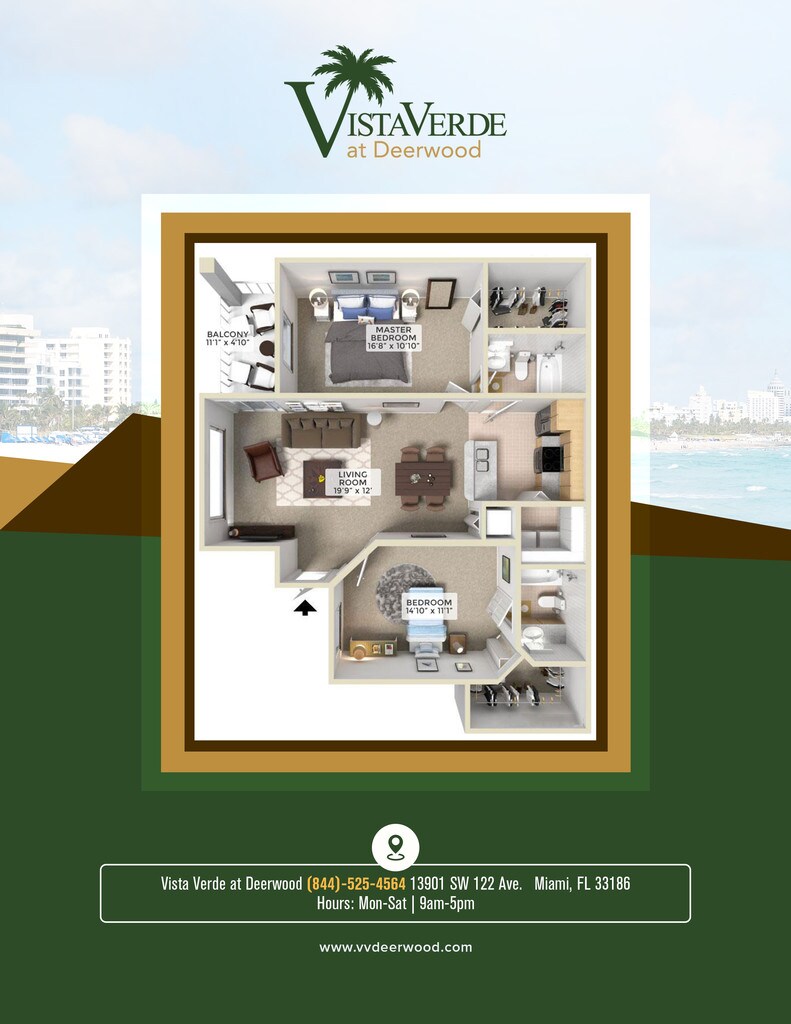 Vista Verde At Deerwood is a Kendall-area apartment complex featuring 1, 2 and 3-Bedroom Residences. Conveniently located near grocery stores, malls, pharmacies, restaurants and the Zoo Miami, these apartments offer easy access to major roads and the Florida Turnpike. Elegance, convenience and tranquility make Vista Verde At Deerwood an ideal rental community. On-site professional staff is available for your comfort. What our tenants are saying.... Every experience we have had with Vista Verde management has been incredible. They are extremely responsive to all of our issues and very friendly. We love how close we are to the turnpike, yet how secluded and quiet the property is."
