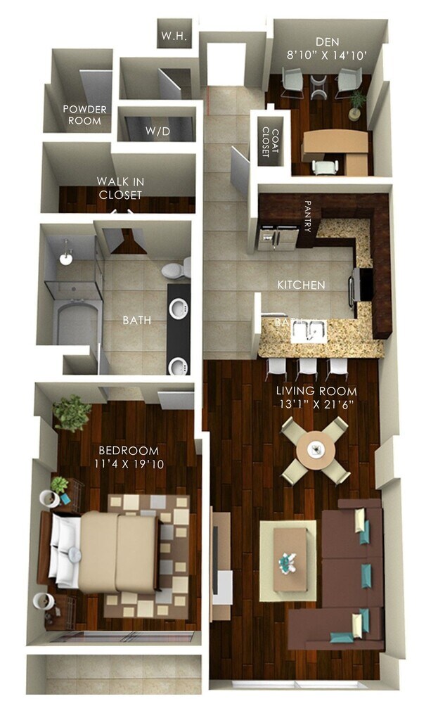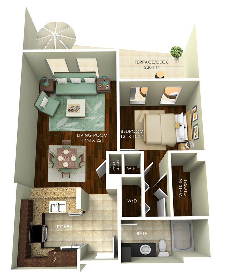 1 Bed, 1 Bath, 671 sq ftModel Gallery