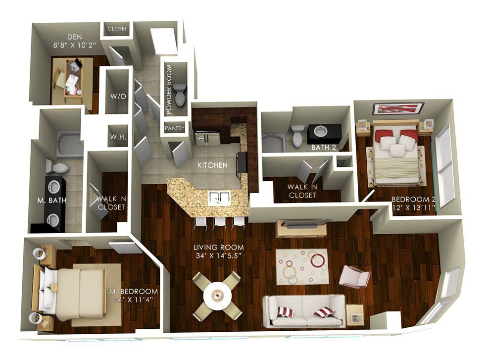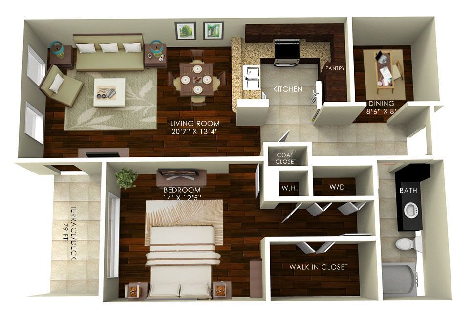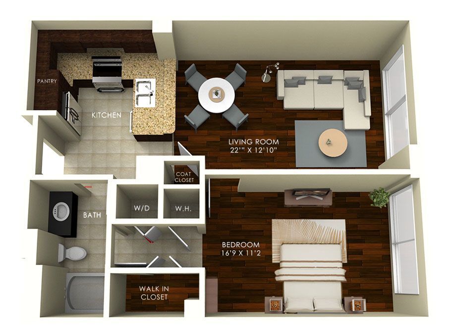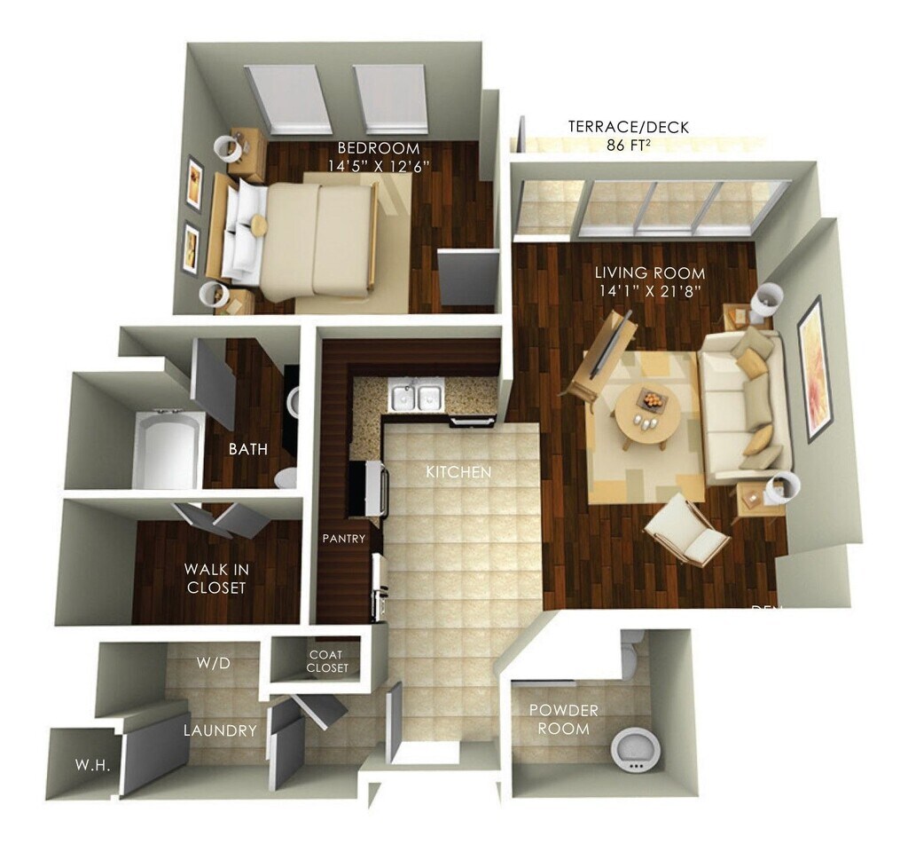 1 Bed, 1 Bath, 689 sq ftModel Gallery