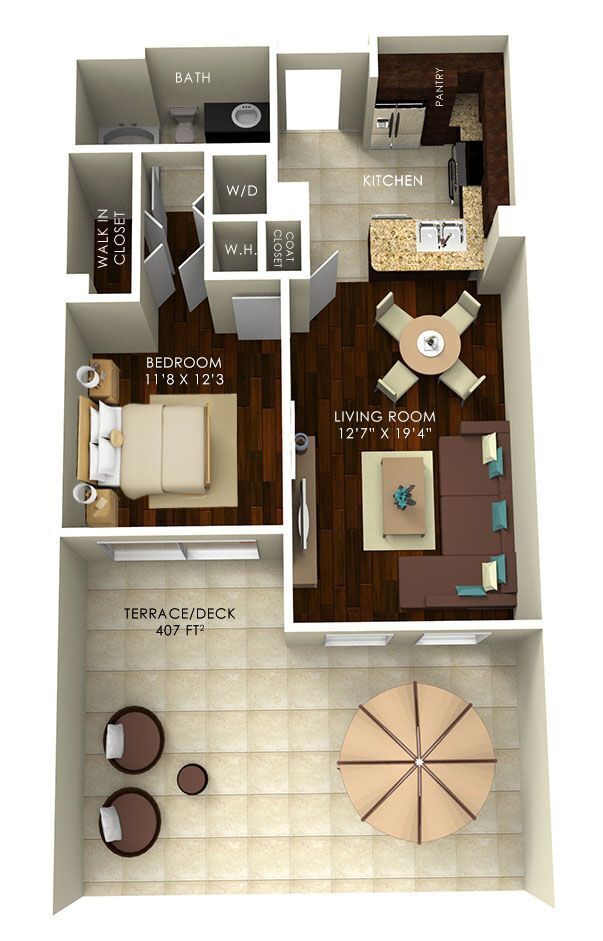 1 Bed, 1 Bath, 683 sq ftModel Gallery