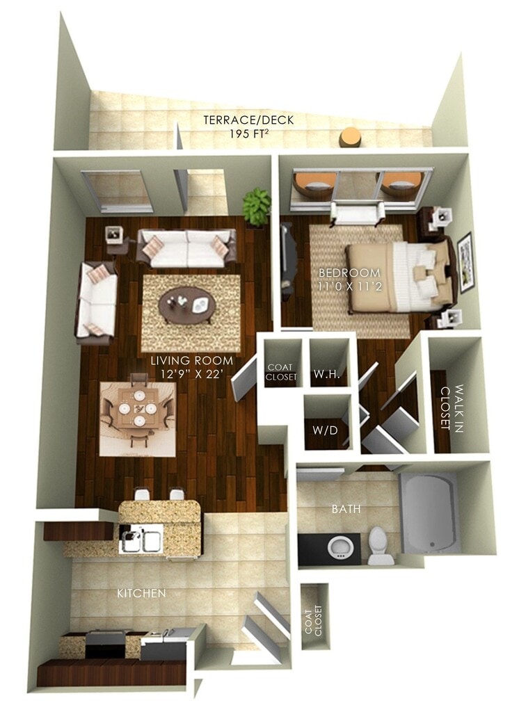 Apartment Model: A1From $1,6751 Bedroom, 1 Bath, 671 sq ftUnavailable![]()