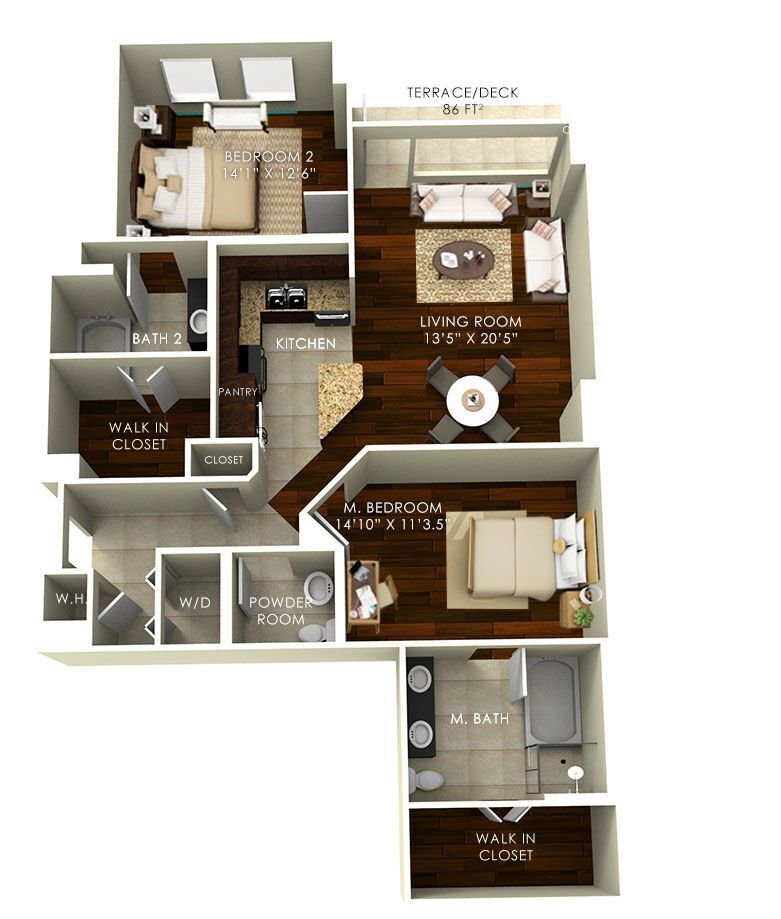 Apartment Model: A14From $1,5801 Bedroom, 1 Bath, 689 sq ftUnavailable![]()