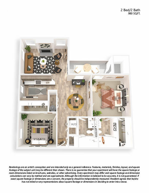 2 Beds, 2 Baths, 980 sq ftAvailable NowCheapest 2 BedroomThis is the cheapest 2 Bedroom at this PropertyModel Gallery