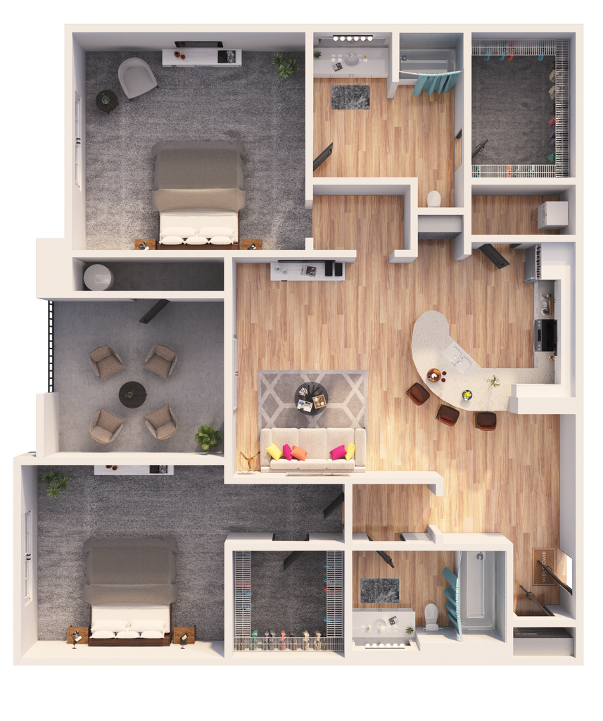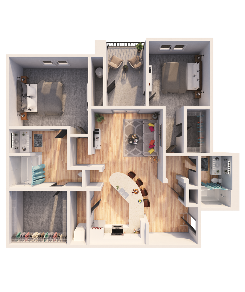 C1 - Floorplan 1 Apartment Unit: 1042Apartment Model: C13 Bedroom, 2 Bath, 1360 sq ftAvailable NowFloorplan C11