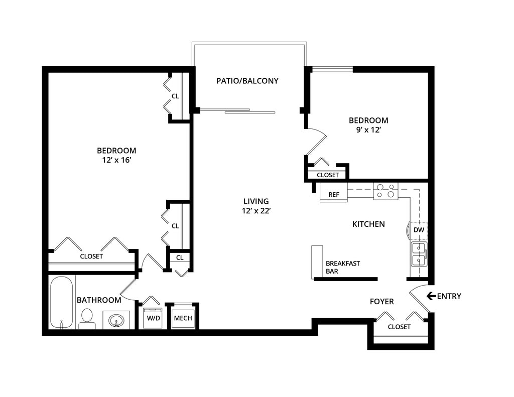 2 Beds, 1 Bath, 912-981 sq ftAvailable NowCheapest 2 BedroomThis is the cheapest 2 Bedroom at this PropertyModel Gallery