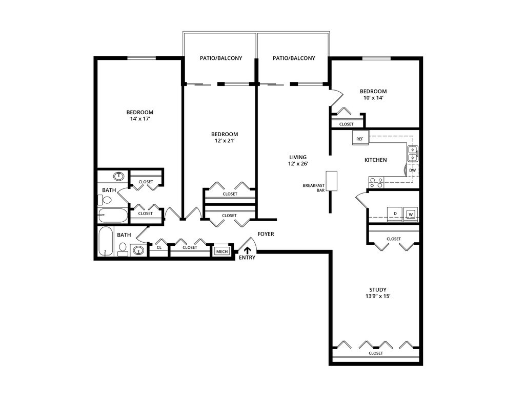 1 Bed, 1 Bath, 981 sq ftAvailable NowLargest 1 BedroomThis is the largest 1 Bedroom at this PropertyModel Gallery