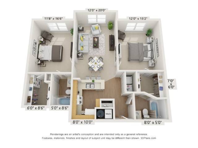 Apartment Model: BFrom $1,6002 Bedroom, 1 Bath, 929 sq ftAvailable Now![]()