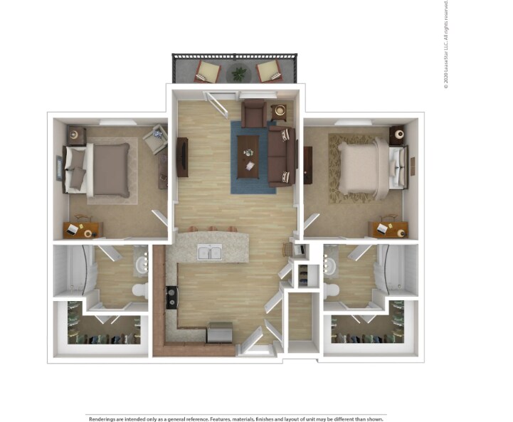 1 Room of a 2 BR unit, 1030 SQFT - Floorplan 2 ![]()
