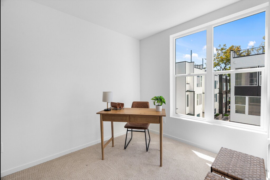 Step into refined urban living in this beautifully designed 3 bedroom, 2.5-bath modern townhome located in Seattle’s Lake City neighborhood. Spread across three levels, this home features high-end finishes, functional layout, and thoughtful details throughout. The main floor offers an open-concept living space with wide-plank wood flooring, a sleek modern kitchen with stainless steel appliances, and a spacious living and dining area. A convenient powder room completes the main level—perfect for guests and everyday ease. Upstairs on the second floor, you'll find the primary suite, featuring a luxurious en suite bathroom with a walk-in shower, double vanity, and modern tile finishes. A second bedroom on this level shares a beautifully appointed full bath, which includes a deep soaking tub—ideal for relaxing at the end of the day. Both second-floor bedrooms are carpeted for comfort. The third bedroom, located on the top floor, includes its own private walk-out patio, the fourth room can be used as a cozy retreat or flexible space for a home office. This townhome also includes in-unit laundry, two private patios, and a spacious rooftop deck—perfect for entertaining or enjoying fresh air. Features at a glance: 3 Bedrooms | 2.5 Bathrooms + Bonus Room (Office/Flex) Modern kitchen with stainless steel appliances Rooftop deck + 2 additional private outdoor spaces Primary suite with walk-in shower & double vanity Soaking tub in second full bath In-unit laundry High-end modern finishes throughout Wood plank flooring (main level), carpeted bedrooms Single-stall garage included A smart layout, upscale design, and premium touches make this the perfect place to call home in one of Seattle’s most desireable neighborhoods.