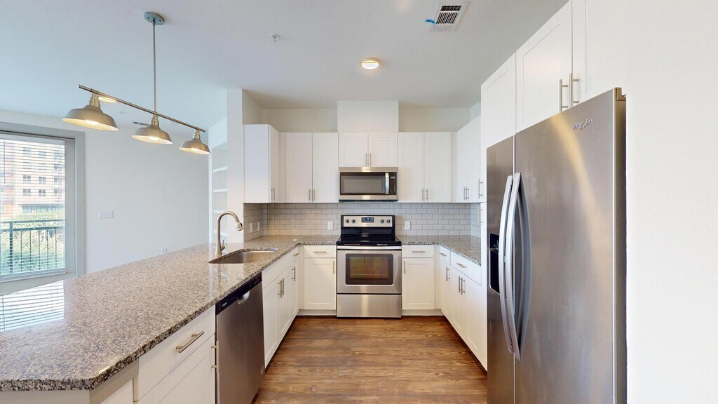 Located near the bustling and expansive Vitruvian Park, Vitruvian West Apartments are perfect for those looking to thrive in a sophisticated yet energetic environment. Residents will enjoy access to on-site amenities such as a grand resort-style pool, fitness center, and entertainment lounge. These stylish apartments feature open kitchens with granite countertops and stainless steel appliances, spa-inspired bathrooms complete with glass-enclosed showers, and a full-size washer and dryer. As part of the Vitruvian Park lifestyle, Vitruvian West residents can participate in a variety of organized activities including daily fitness classes, volley leagues, kickball leagues, urban markets, and local running races for charity. We are currently offering self-guided tour appointments.
