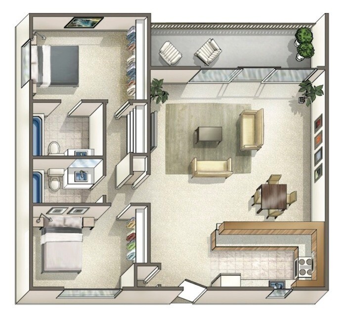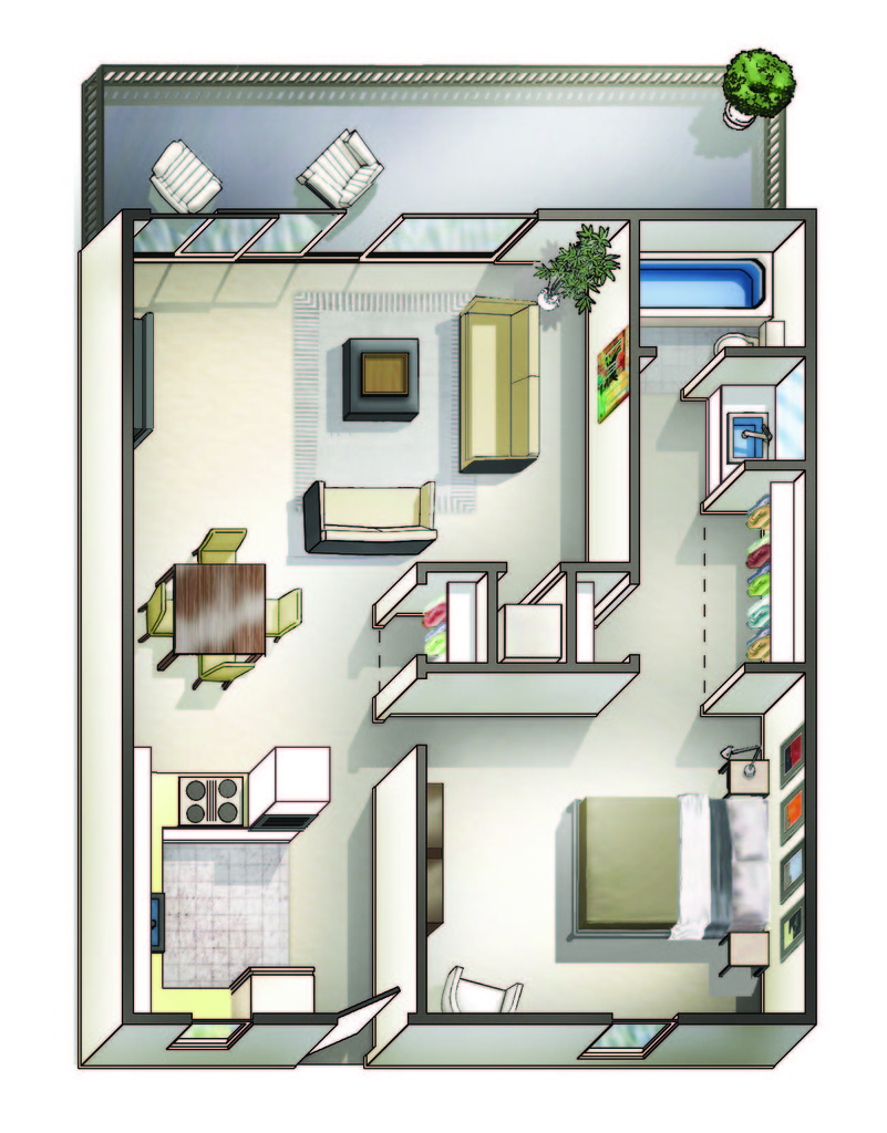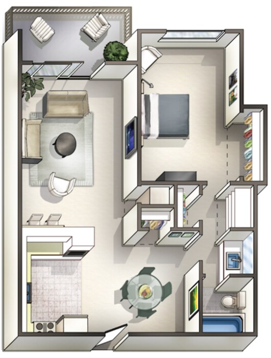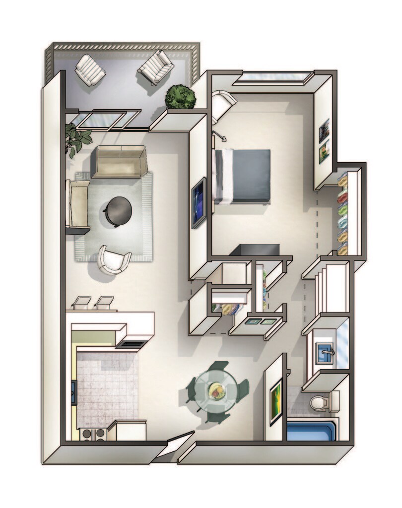 1 Bed, 1 Bath, 639 sq ftModel Gallery