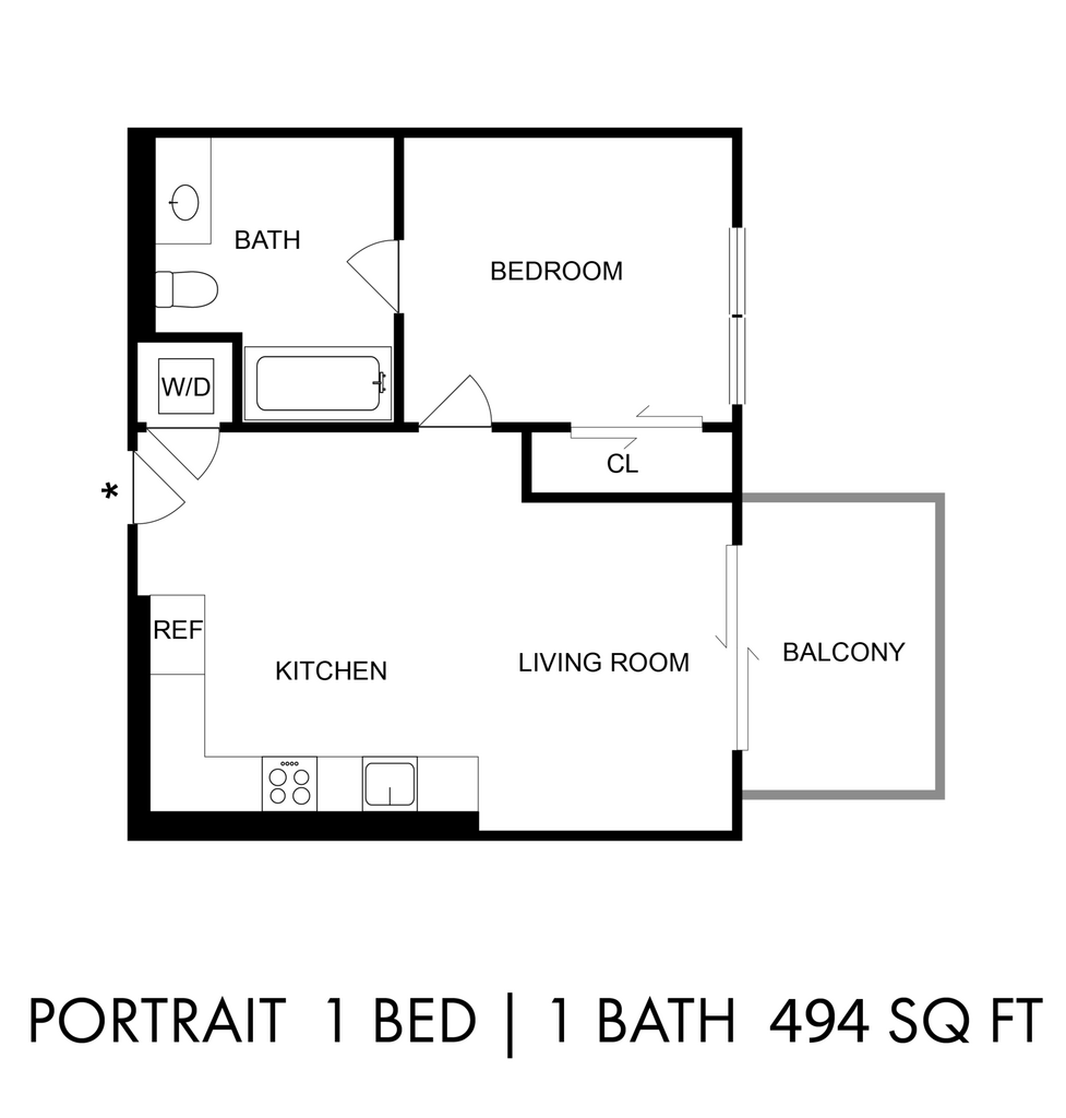 Studio, 1 Bath, 425 sq ftAvailable NowModel Gallery