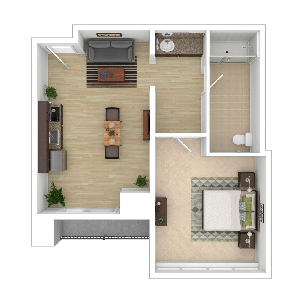 1 Bed, 1 Bath, 413 sq ftModel Gallery