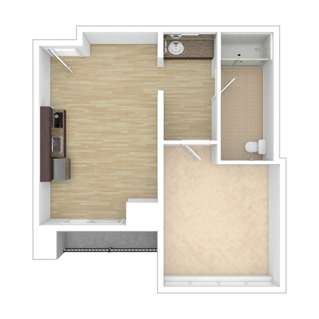 1 Bed, 1 Bath, 383 sq ftModel Gallery