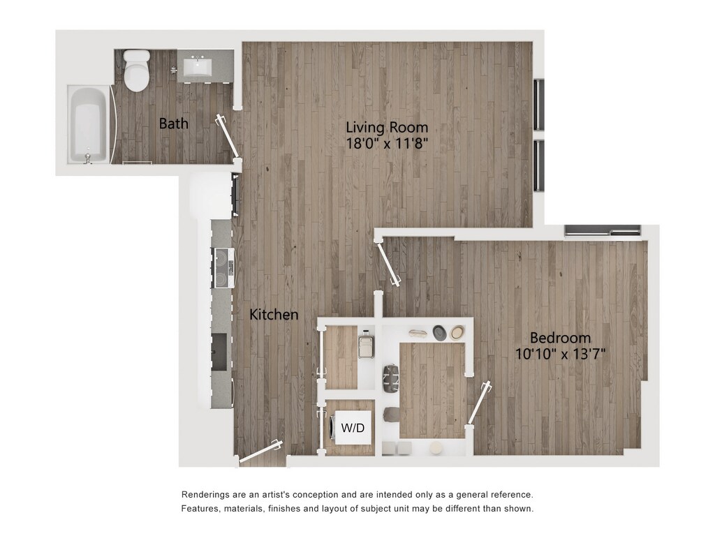 Studio, 1 Bath, 594 sq ftAvailable NowModel Gallery
