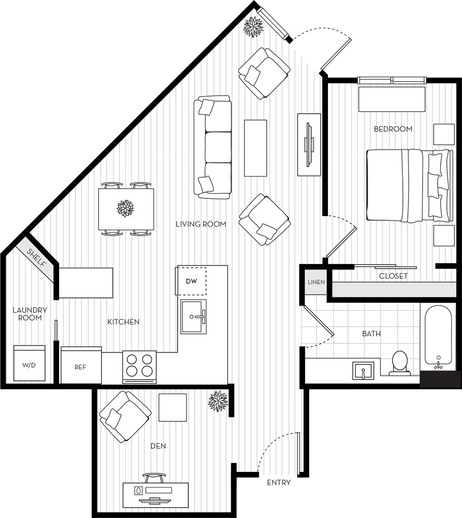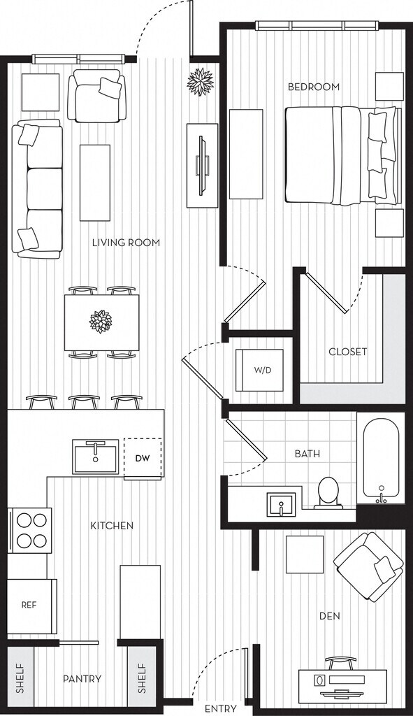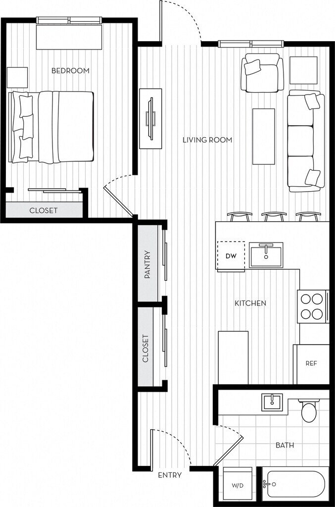 1 Bed, 1 Bath, 573 sq ftAvailable NowModel Gallery