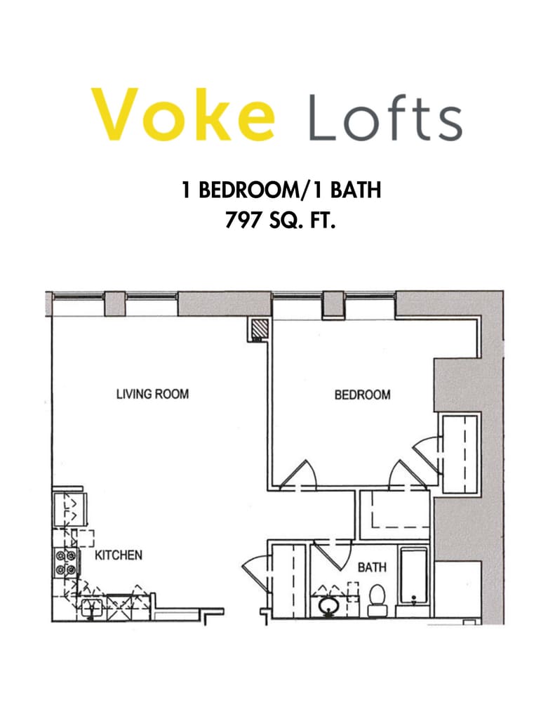 Voke Lofts offers 1 Bedroom apartments starting from $2,595 and having 706 sq ft. Here is the current pricing and availability: