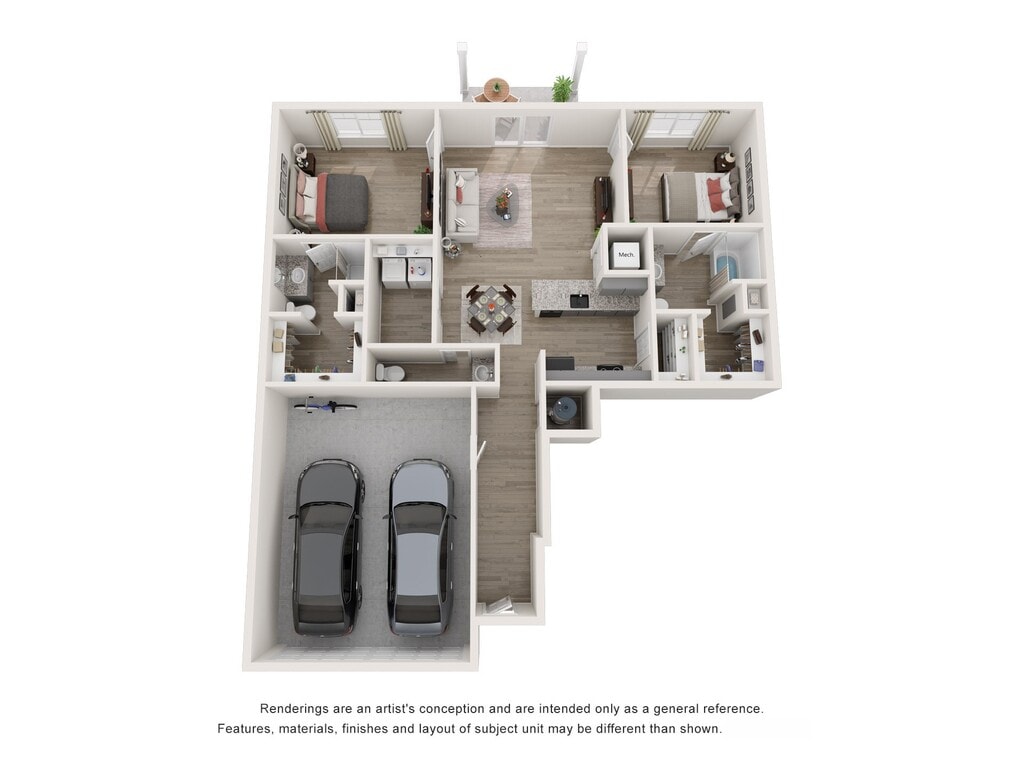 2 Beds, 2.5 Baths, 1558 sq ftModel Gallery