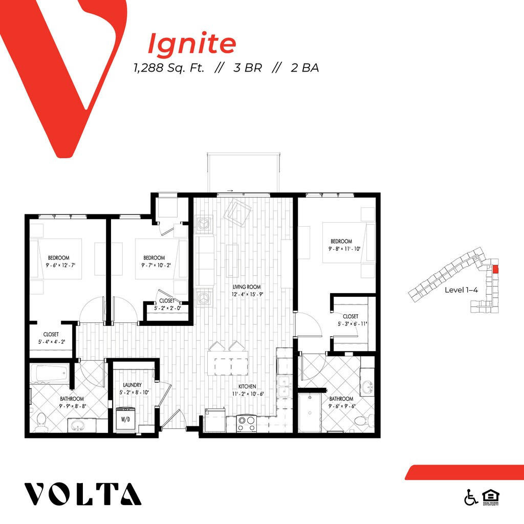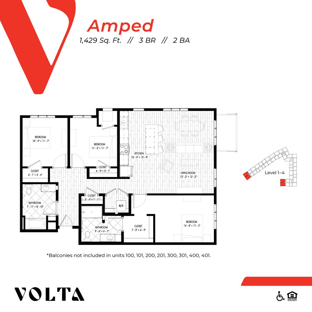 Volta offers 1 to 3 Bedroom apartments having 734–1,429 sqft. Here is the current pricing and availability: