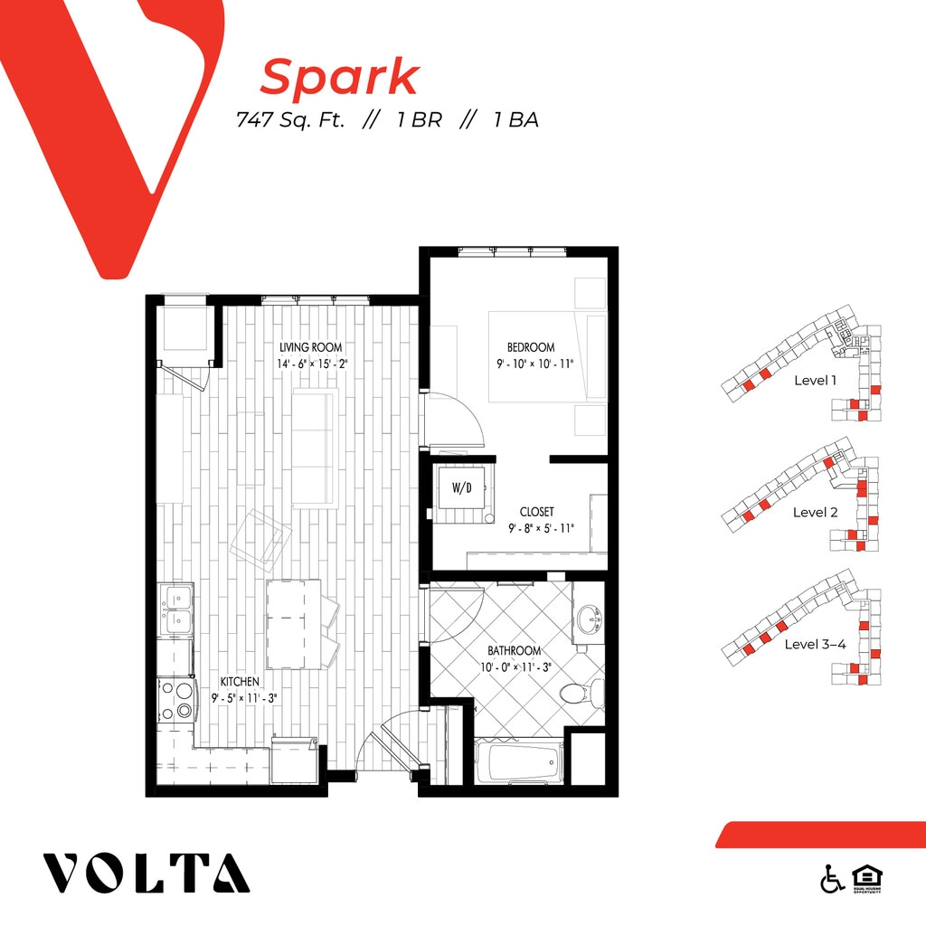 Price Availability Date Unit Sq Ft $1,394 Call for Availability Spark ADA 747 sq ft * Price shown is Total Monthly Price including feesModel Amenities and Features