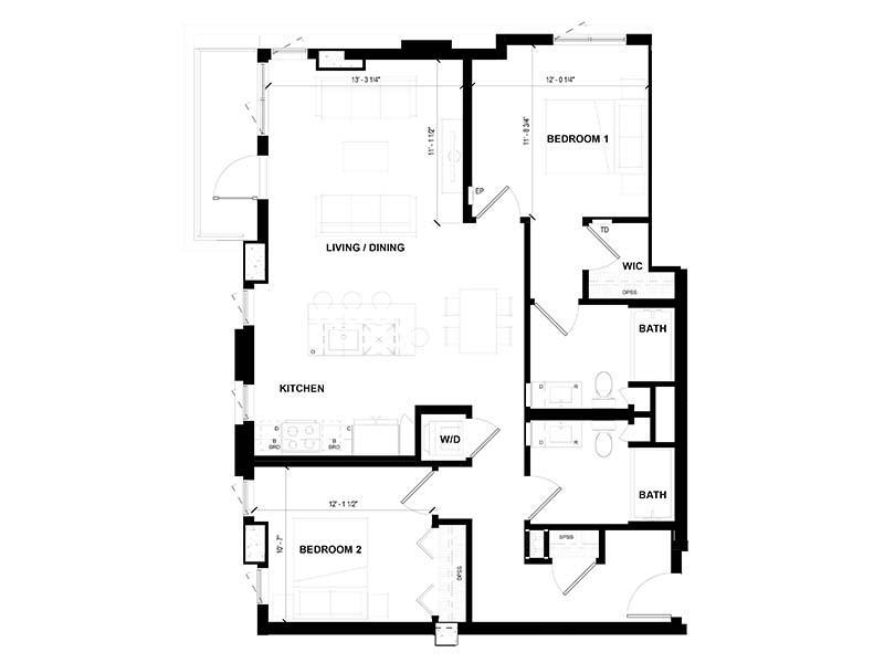 Studio, 1 Bath, 616 sq ftAvailable NowModel Gallery