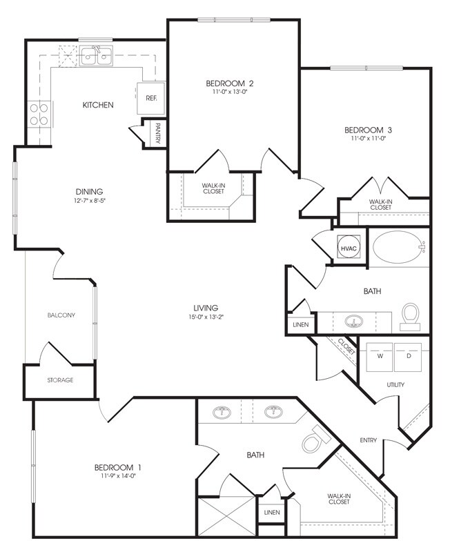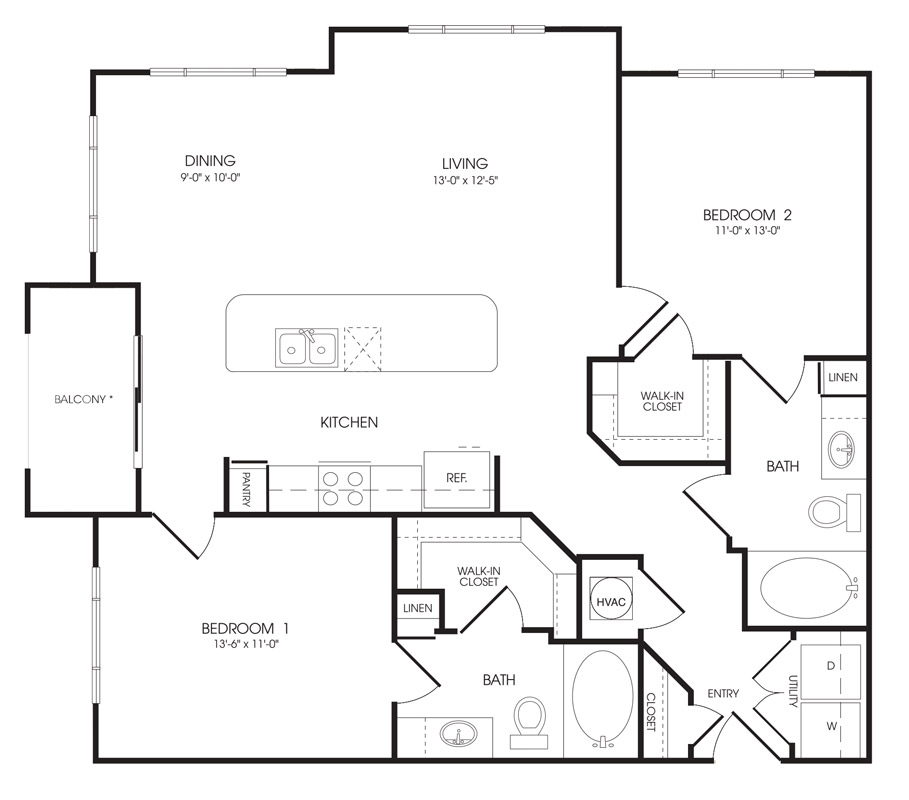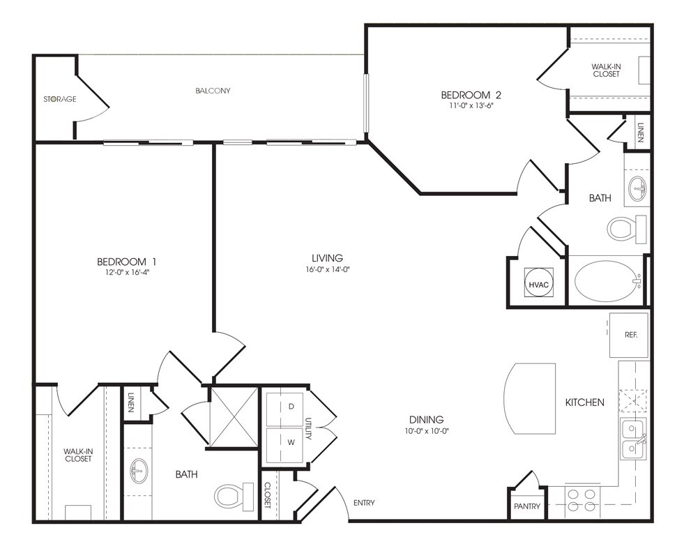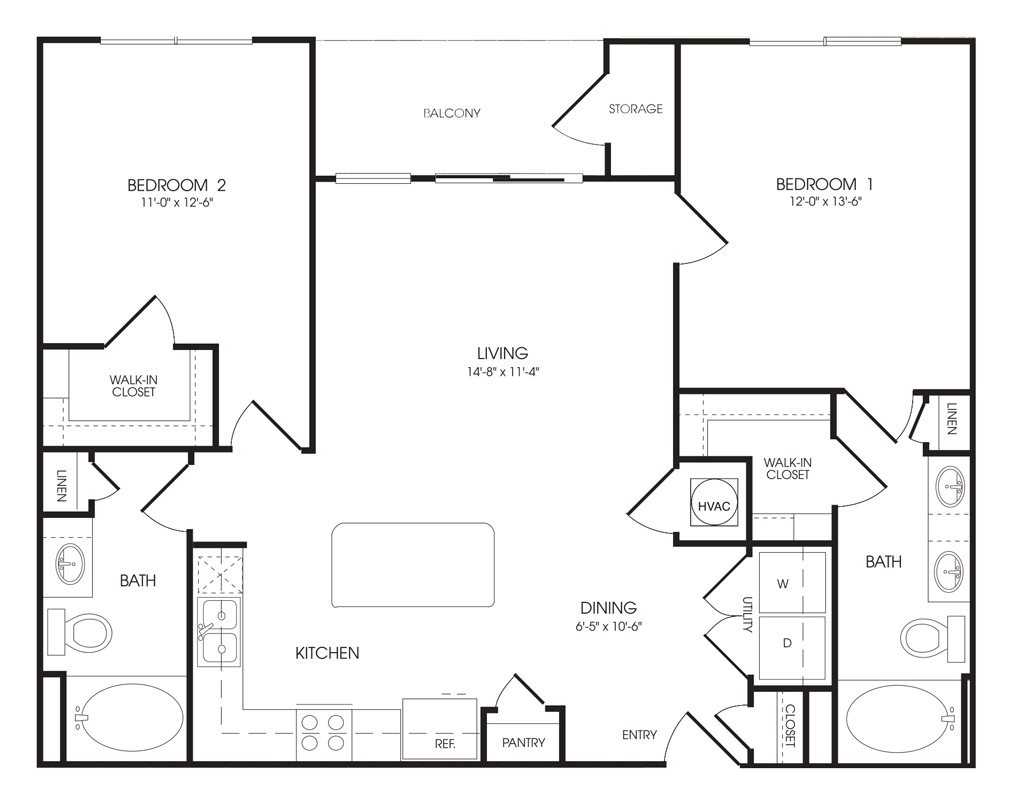 2 Beds, 2 Baths, 1274 sq ftAvailable Nov 30Largest 2 BedroomThis is the largest 2 Bedroom at this PropertyModel Gallery