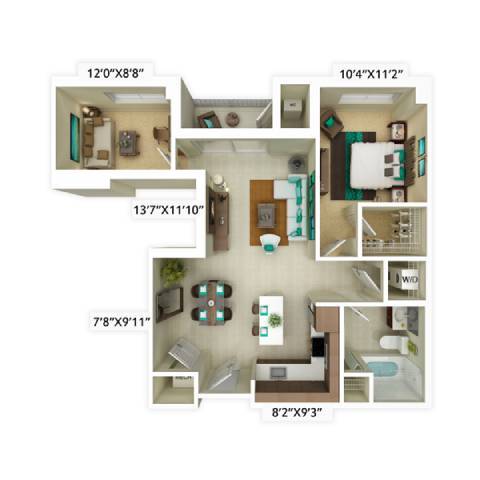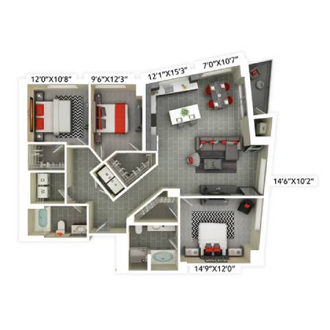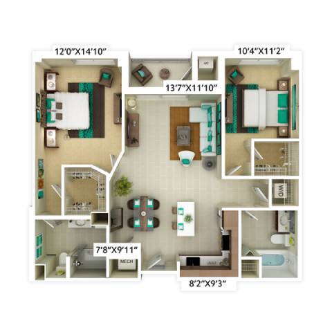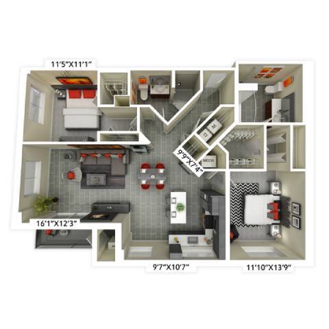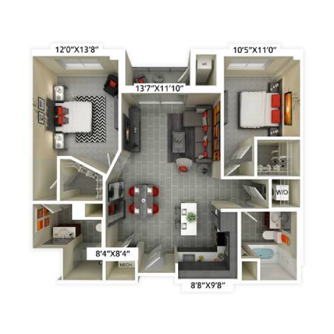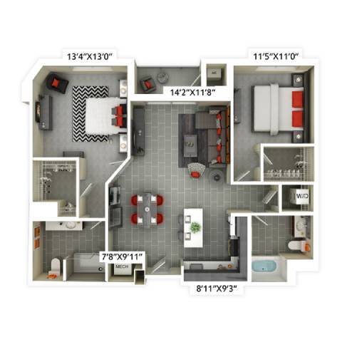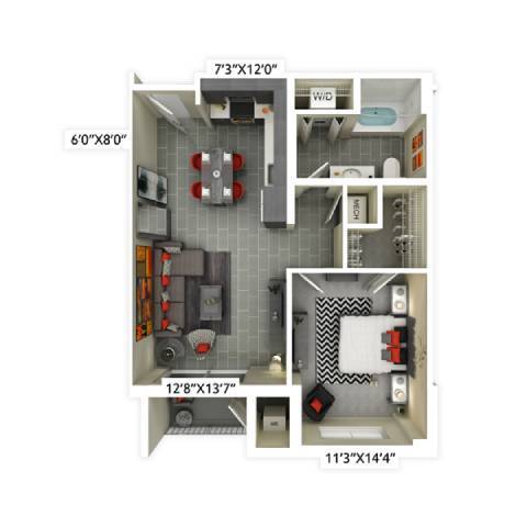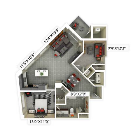 1 Bed, 1 Bath, 737 sq ftAvailable NowModel Gallery