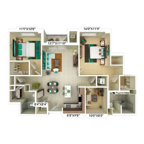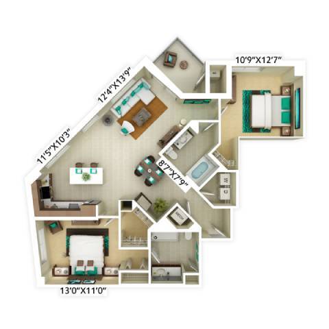 Apartment Model: A2-09From $2,6911 Bedroom, 1 Bath, 718 sq ftAvailable Now![]()
