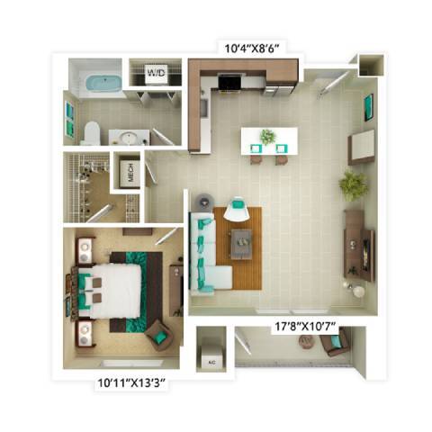 1 Bed, 1 Bath, 718 sq ftAvailable NowCheapest 1 BedroomThis is the cheapest 1 Bedroom at this PropertyModel Gallery