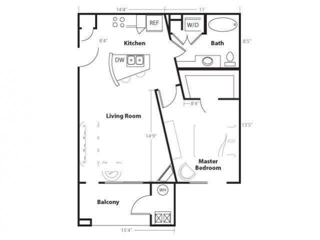 1 Bed, 1 Bath, 843 sq ftLargest 1 BedroomThis is the largest 1 Bedroom at this PropertyModel Gallery
