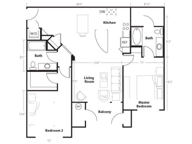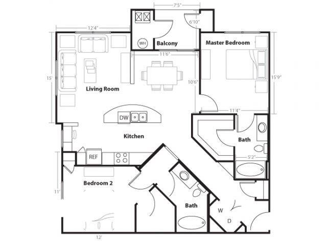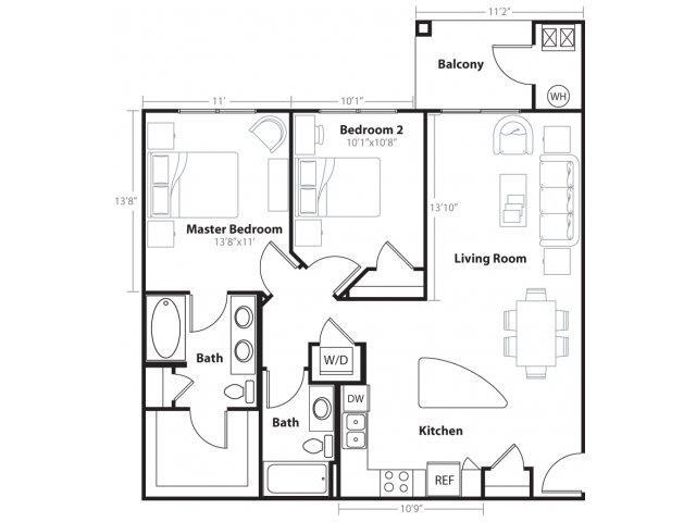 2 Beds, 2 Baths, 1209 sq ftAvailable NowLargest 2 BedroomThis is the largest 2 Bedroom at this PropertyModel Gallery