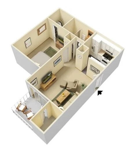 Apartment Model: 1x1 RB$2,1991 Bedroom, 1 Bath, 570 sq ftAvailable July 24, 2026FloorplansPhotos![]()