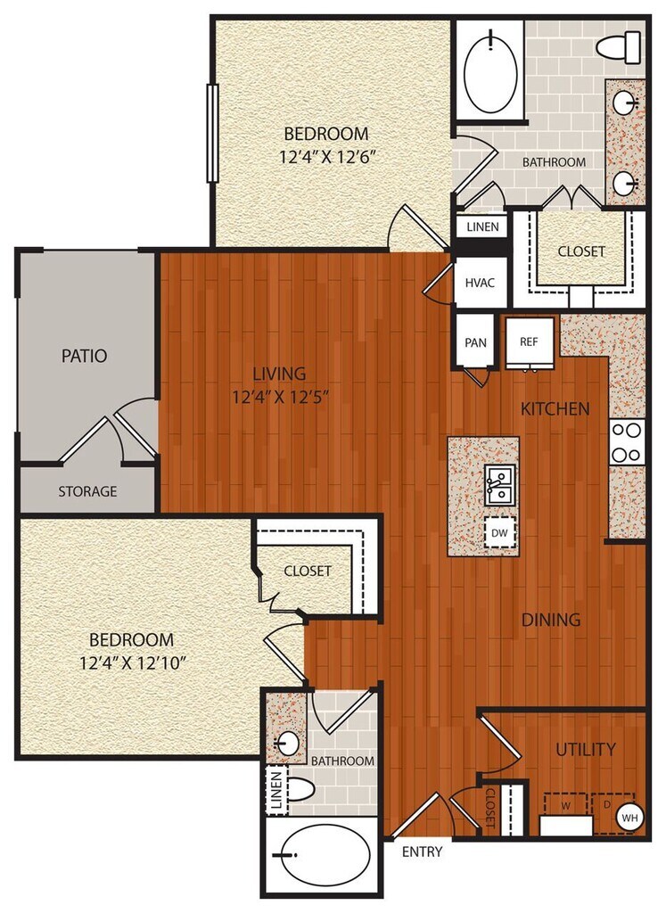2 Beds, 2 Baths, 1134 sq ftAvailable NowModel Gallery