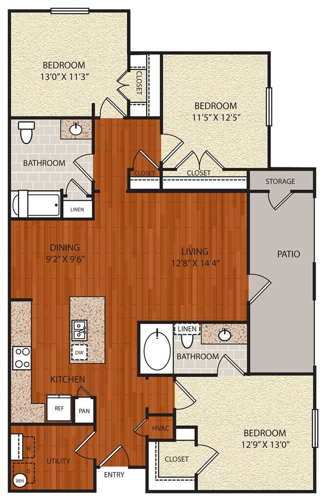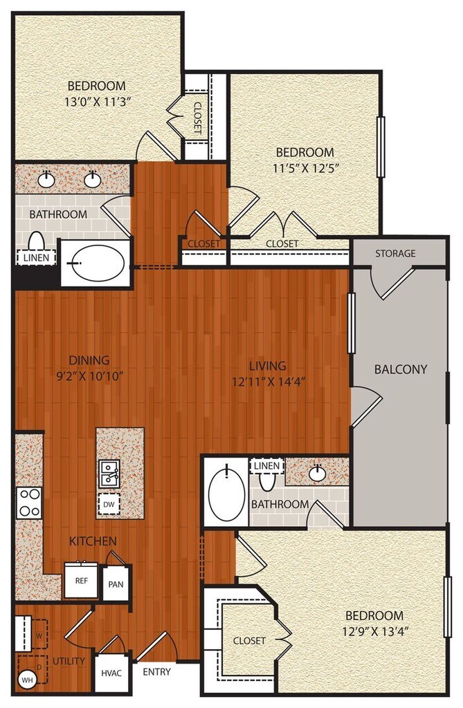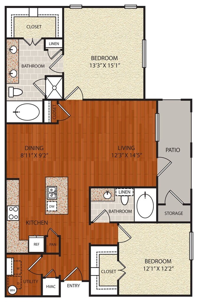 Apartment Model: B1From $1,6092 Bedroom, 2 Bath, 1134 sq ftAvailable Now![]()