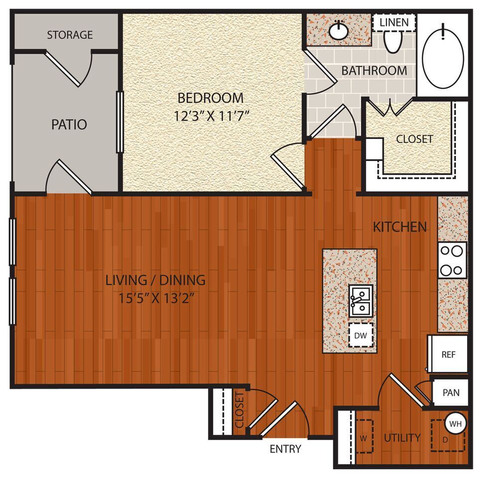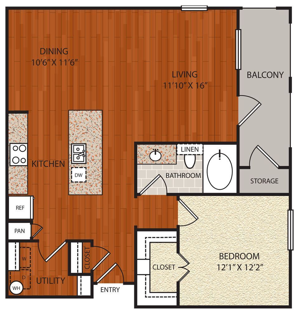 Apartment Model: A1From $1,3921 Bedroom, 1 Bath, 692 sq ftUnavailable![]()