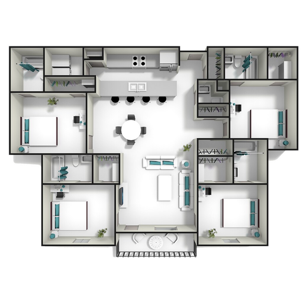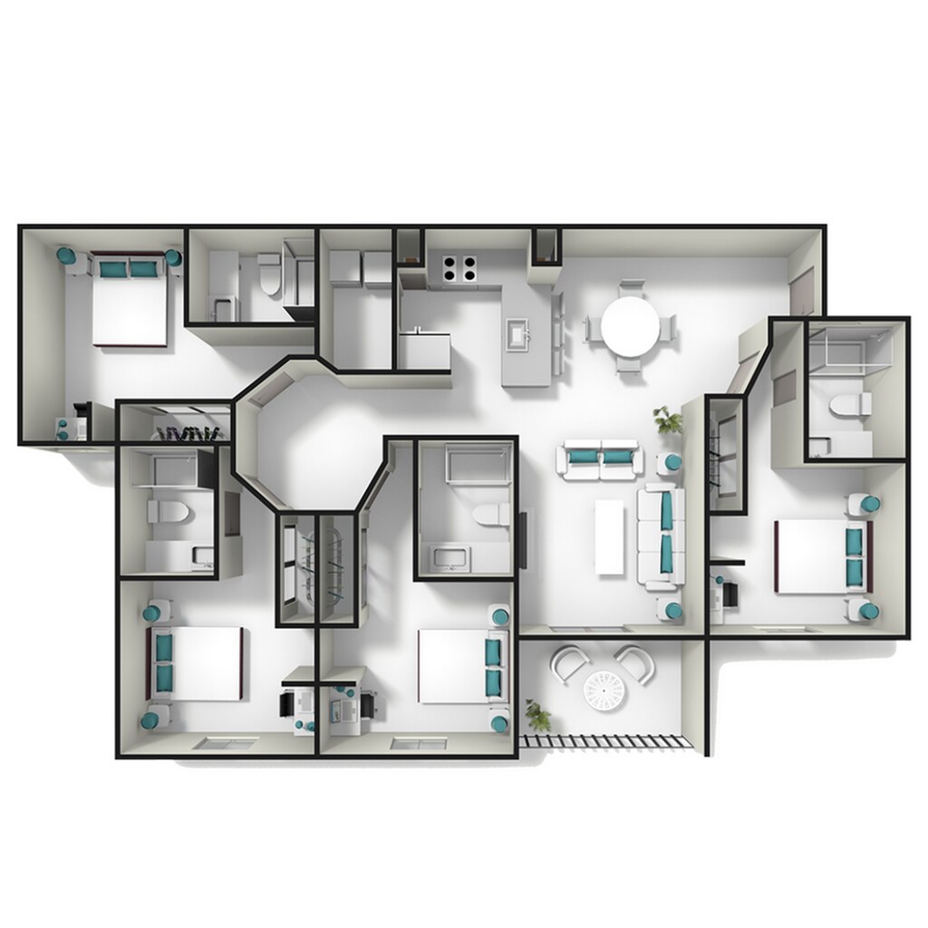 4BR/4BA - Floorplan 1 Apartment Unit: PrivateApartment Model: 4BR/4BA$7194 Bedroom, 4 Bath, 1384 sq ftAvailable NowApartment Unit: PrivateApartment Model: 4BR/4BA$7194 Bedroom, 4 Bath, 1384 sq ftAvailable August 19, 20264BR/4.5BA