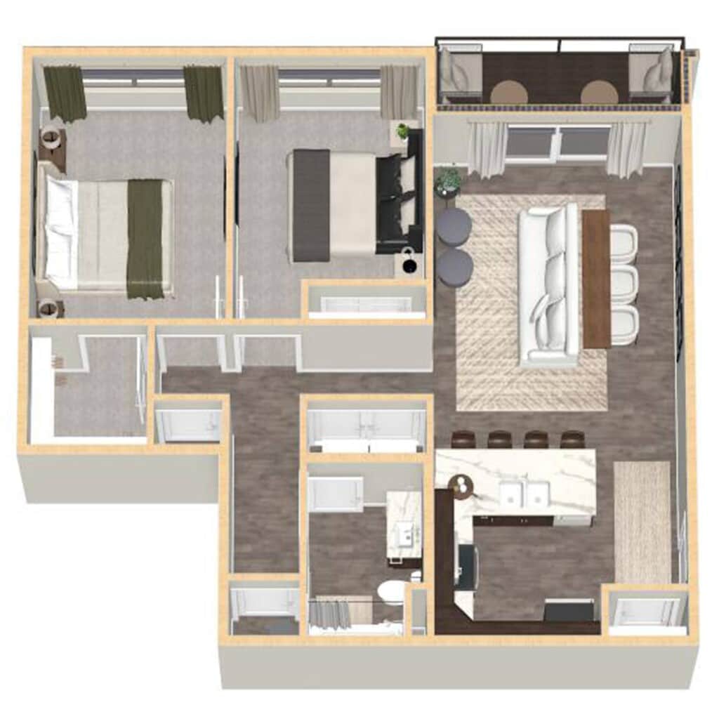 2 Beds, 2 Baths, 1244 sq ftAvailable NowLargest 2 BedroomThis is the largest 2 Bedroom at this PropertyModel Gallery