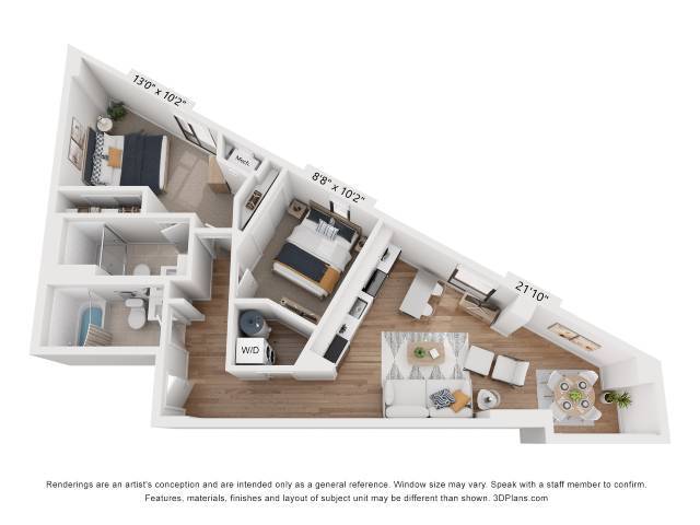 B1 - Floorplan 1 Apartment Unit: 1602Apartment Model: B1$2,8222 Bedroom, 2 Bath, 910 sq ftAvailable NowFloorplan B2