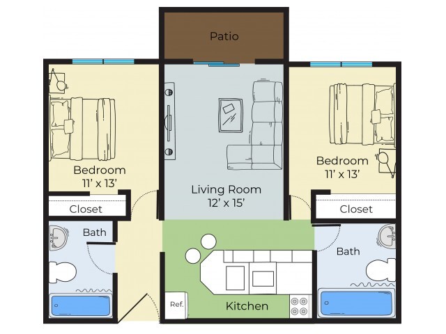 Apartment Model: 2 Bedroom 1.5 Bath2 Bedroom, 1.5 Bath, 825 sq ftUnavailable![]()