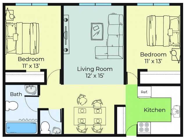 Apartment Model: 2 Bedroom 1 Bath2 Bedroom, 1 Bath, 825 sq ftAvailable Now![]()